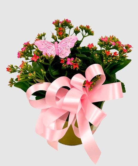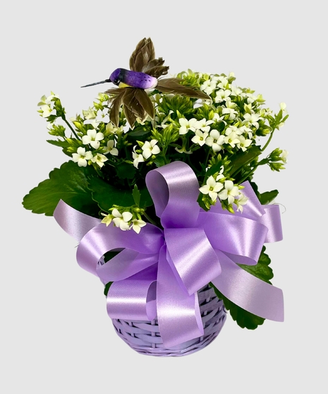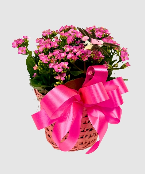 Color of kalanchoe and basket will vary upon availability. Ribbons and additional items will vary per plant.