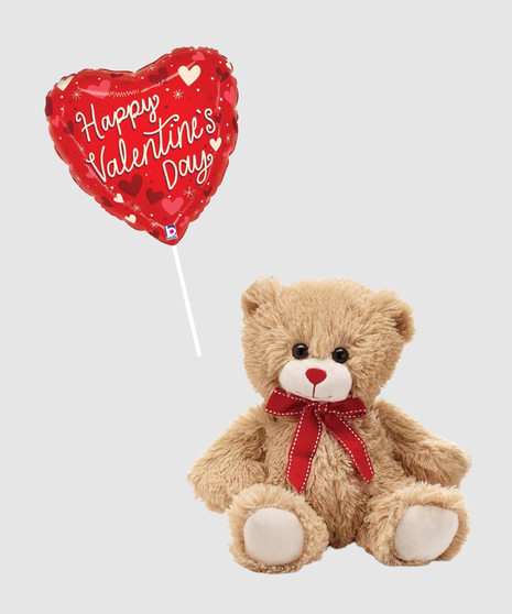 Bear - 1 Valentine's 9" Stick Balloon, 1 Teddy Bear Plush