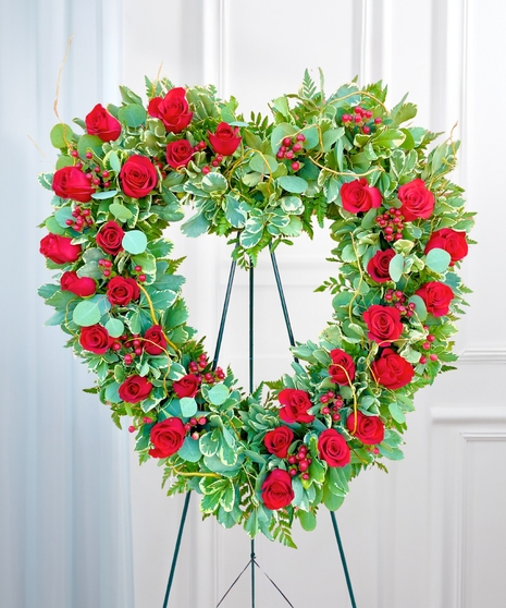 Roses in any color—white for purity and remembrance, red for love and respect, or soft pastels for gentle tribute—serve as the focal point of the Divine Grace open heart. Each bloom is carefully arranged to convey grace, reverence, and enduring affection, allowing the wreath to be personalized to reflect the unique spirit and personality of the departed.