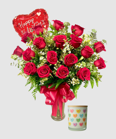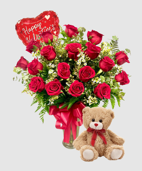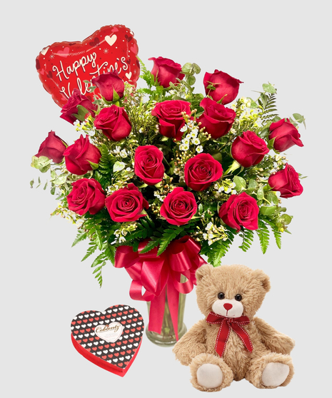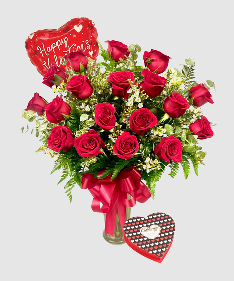 Send a stunning arrangement of Eighteen Roses which are elegantly designed with long stem roses, premium filler and lush greenery in a clear glass vase accentuated with a satin bow. Eighteen roses are perfect to express your love to your one-and-only for any special occasion such as anniversaries, birthdays, Valentine's Day or even just because.