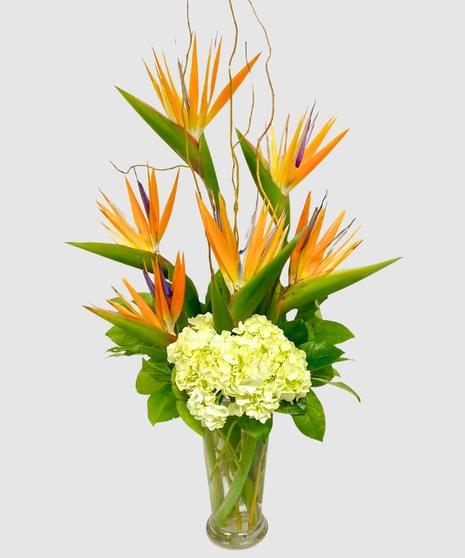 Arranged in a clear glass vase, this tropical creation captures both strength and serenity. Perfect for celebrations, offices, or anyone who loves bold, uplifting beauty, it brings a splash of paradise wherever it’s placed.